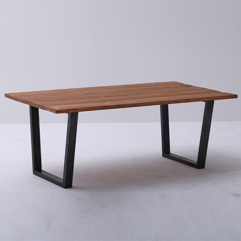A modern rectangular dining table combining a solid wooden top and a minimalist black metal frame. Ideal for both casual and formal dining spaces.